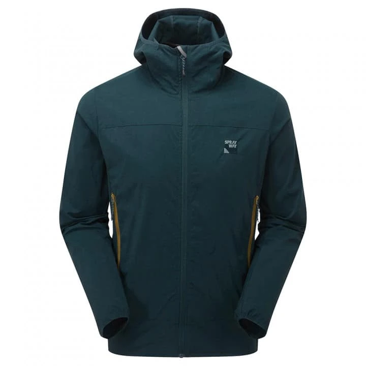 De SPRAYWAY HALLIN HOODY is een waterdicht/lichtgewicht softshell jas voor mannen, gemaakt van TecWEAVE Stretch 135 polyamide stof met waterafstotende afwerking.